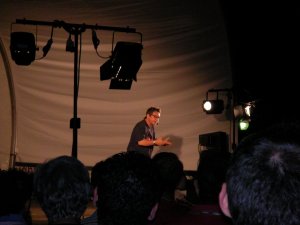 Anche la lunga tenda parasole sbatacchia sinistramente sotto il vento crudele, ma indenne.