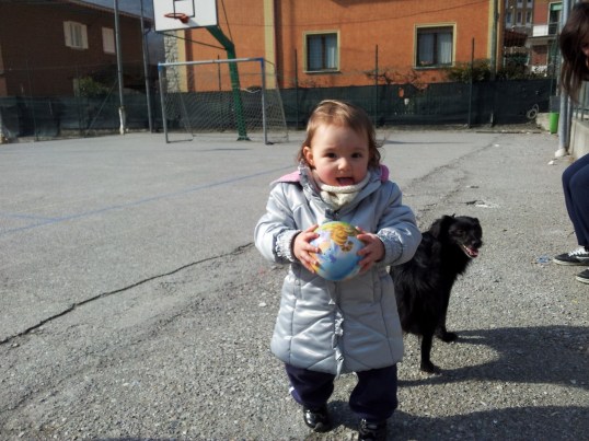 Il passeggino è un vago ricordo. Simone non ne vuol sapere, segue a ruota l’Alessia: se vede suo fratello a piedi, vuole andare a piedi anche lei… E’ un bene? Speriamo.
